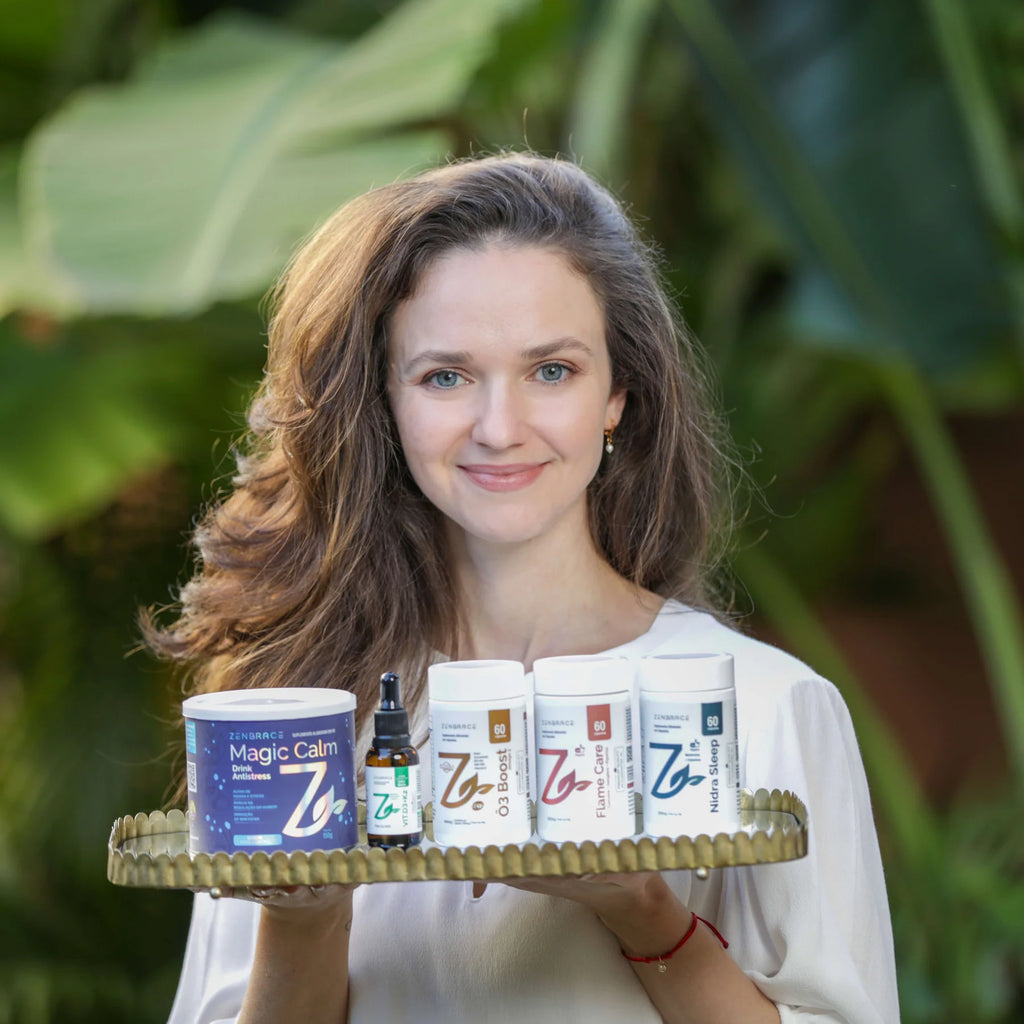 Dica Zen para Seu Ritual: Transforme o uso dos seus suplementos em um momento de conexão e autocuidado. Reserve alguns minutos para você durante o preparo do Magic Calm e crie um ambiente propício para o sono ao tomar o Nidra Sleep (diminuindo telas, etc.). Seu corpo e mente responderão com mais equilíbrio e disposição.